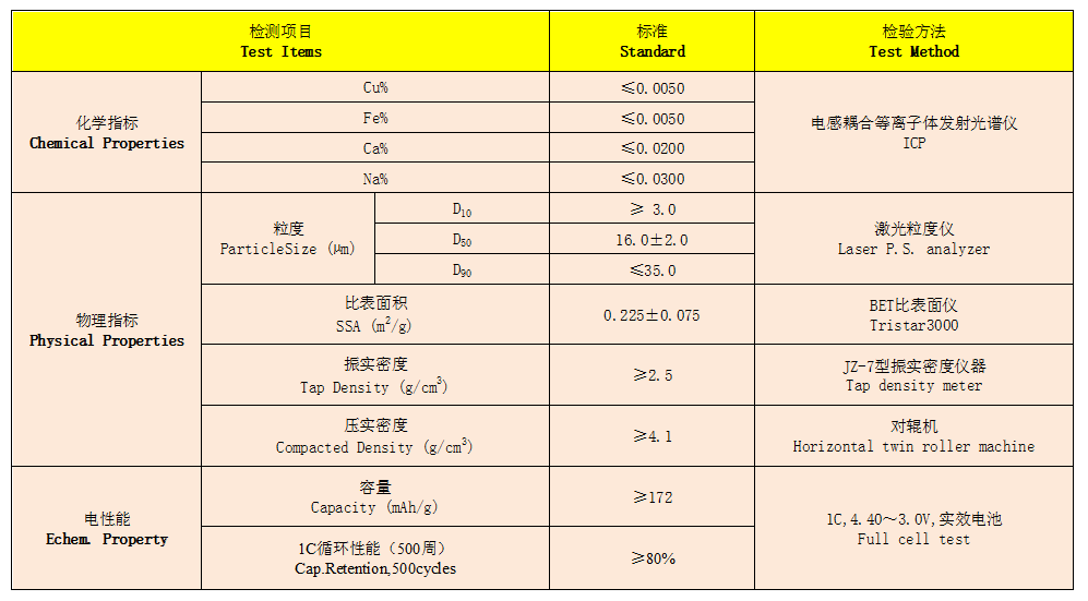 高能量密度、長壽命、高安全鈷酸鋰材料,適合于4.35-4.45V電壓的高容量方形,聚合物電池,圓柱形電池,用于高端智能手機、平板電腦,筆記本電腦領域。