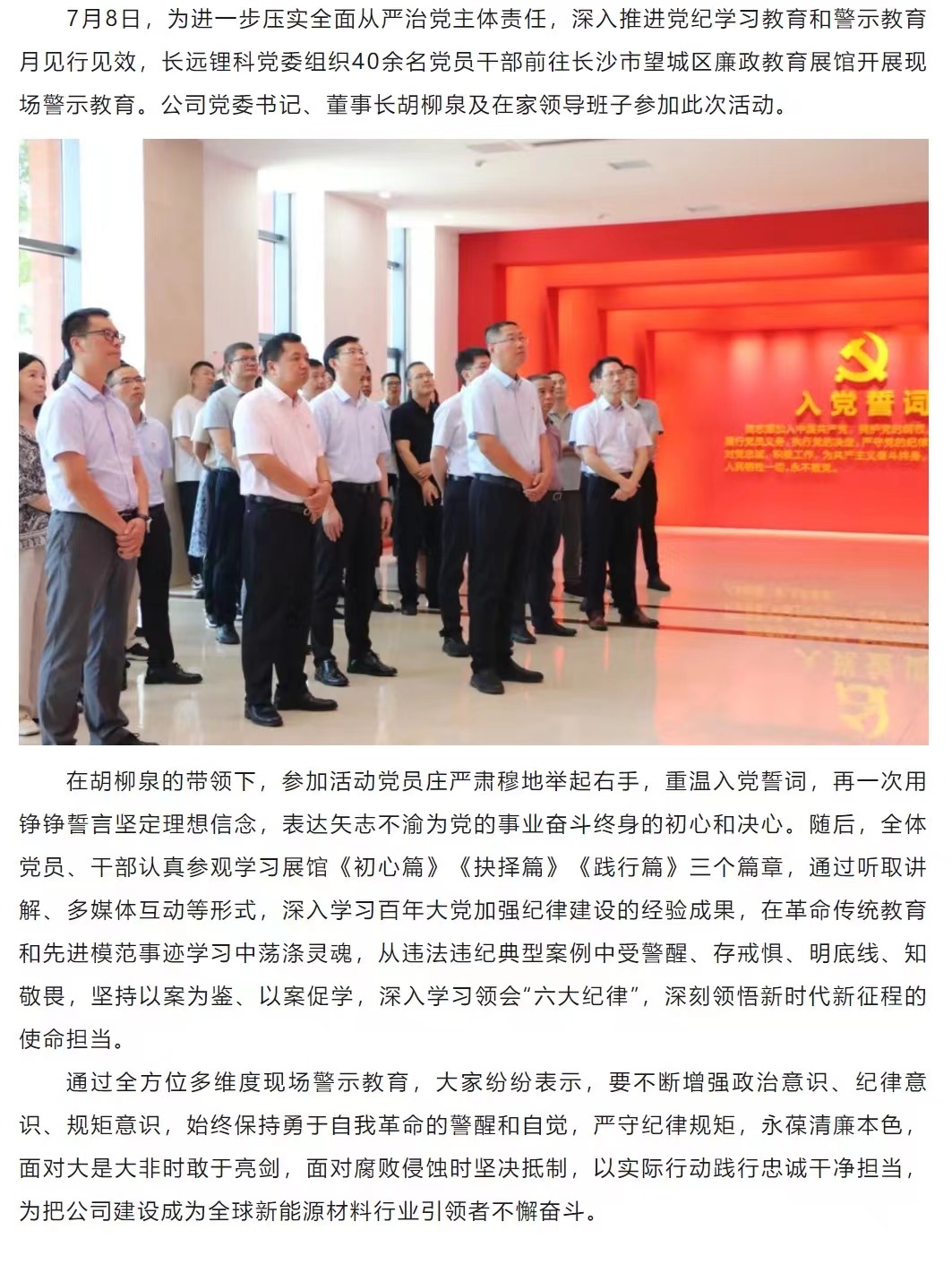 長遠鋰科黨委組織開展現場警示教育