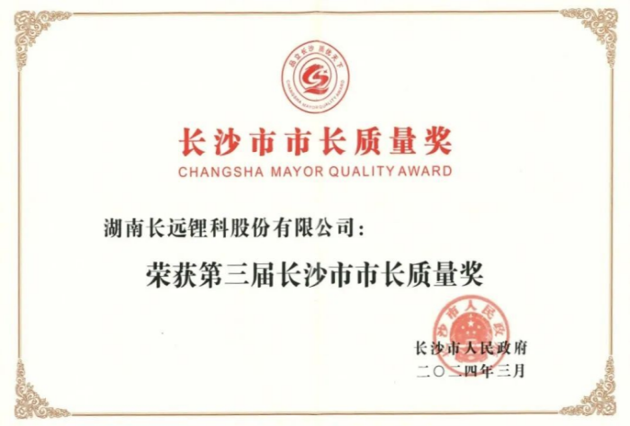 • 第三屆長沙市市長質(zhì)量獎